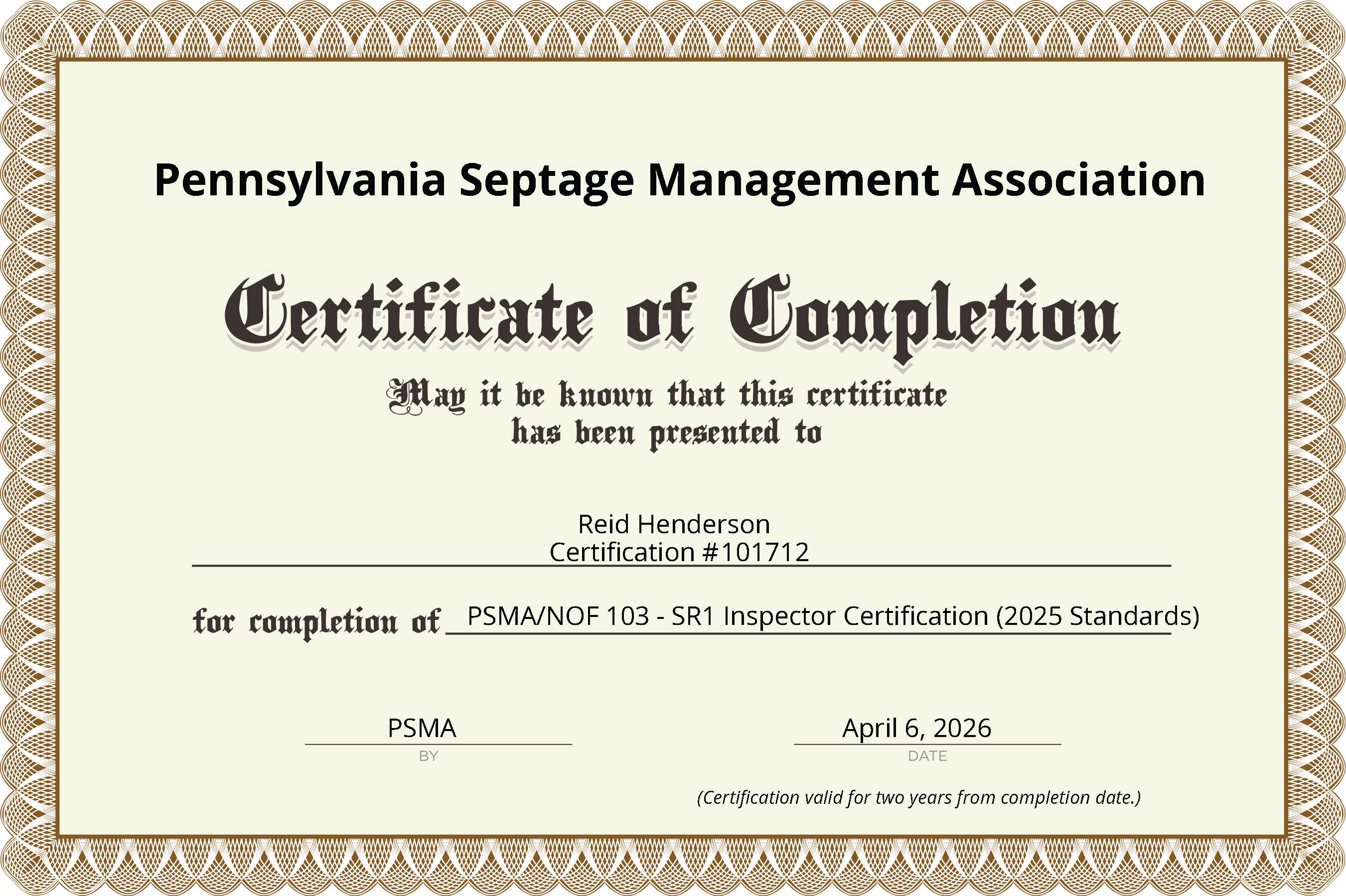 PSMA/NOF 103 - SR1 Inspector Certification (2025 Standards)
